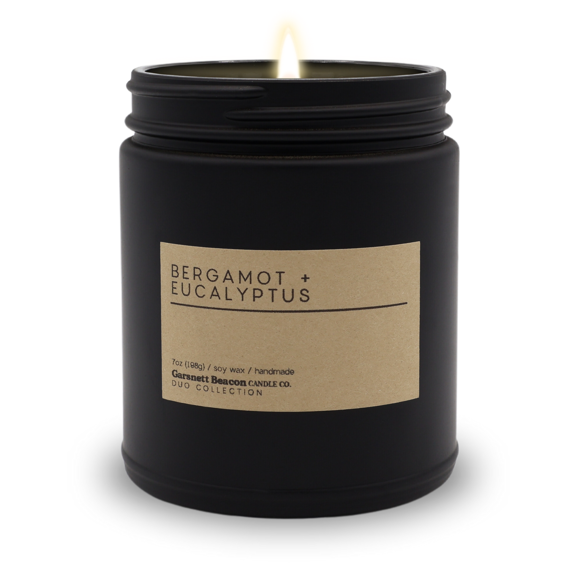 Refresh your senses with the Bergamot + Eucalyptus candle from the DUO collection by Garsnett Beacon. This candle combines the bright, earthy citrus notes of bergamot with the crisp, clean aroma of eucalyptus, complemented by a hint of spicy coriander. This vibrant and uplifting fragrance blend is perfect for rejuvenating any space, promoting a sense of clarity and calm. Housed in our sleek matte black container with a matching lid, this candle not only smells delightful but also adds a modern touch to your decor.